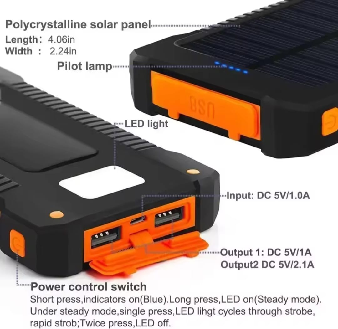מטען סולארי נייד mAh 30000 סוללה חיצונית לטעינה מהירה, עמיד למים עם פנס דלק איתן