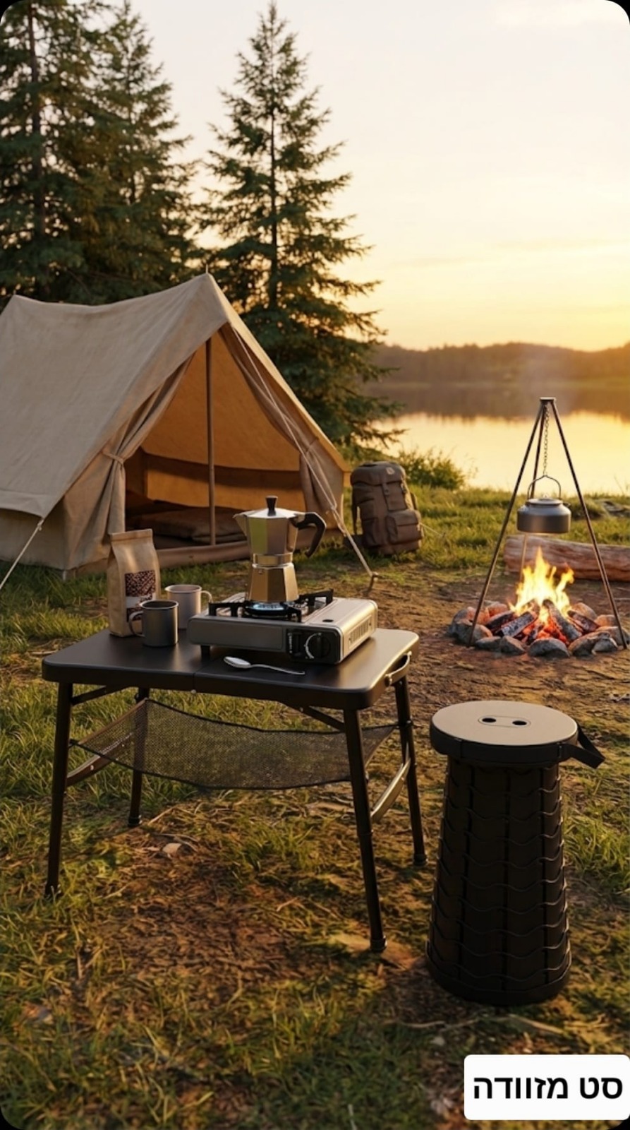 תיאור כללי: סט קמפינג קל משקל ונוח לנשיאה, עשוי פלסטיק איכותי בצבע שחור. הפתרון האידיאלי למטיילים שמחפשים חיסכון במקום ובמשקל. כולל תא אכסון רשת לשולחן (כלול במחיר).