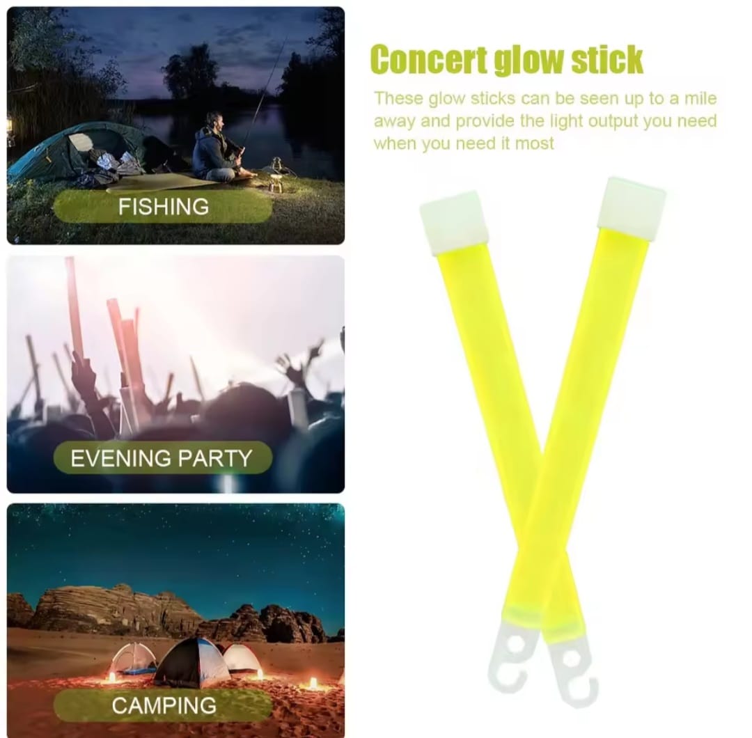 10 יחידות של 15 סמ סטייקלייט (מקל זוהר) פלואורסצנטיים עם וו לטיולים קמפינג חיצוני חירום קונצרט מסיבת אור מקל דלק אית.