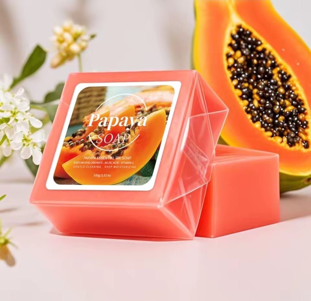 סבון פפאיה מבוסס על מרכיבים טבעיים ומיועד לטיפוח עמוק של עור הפנים והגוף.