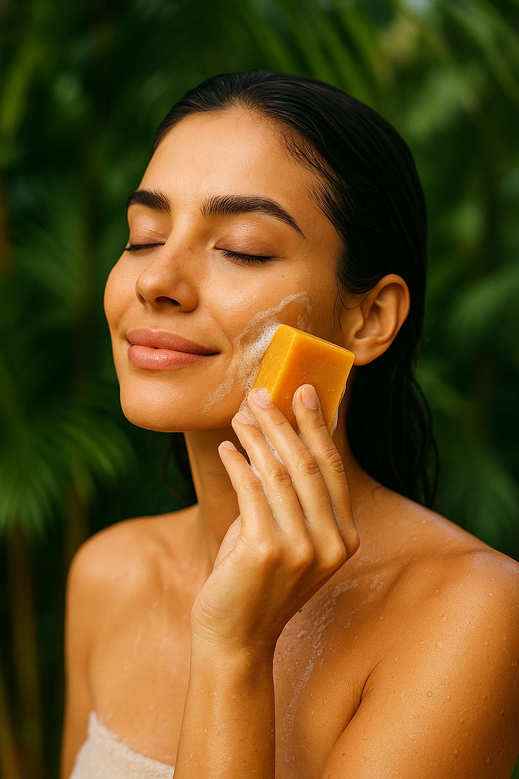 סבון הכורכום של Turmeric מבוסס על מרכיבים טבעיים ומיועד לטיפוח עמוק של עור הפנים והגוף.
